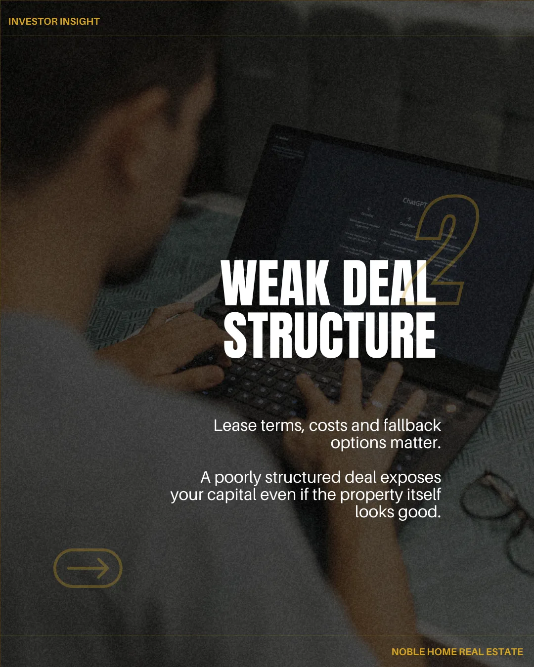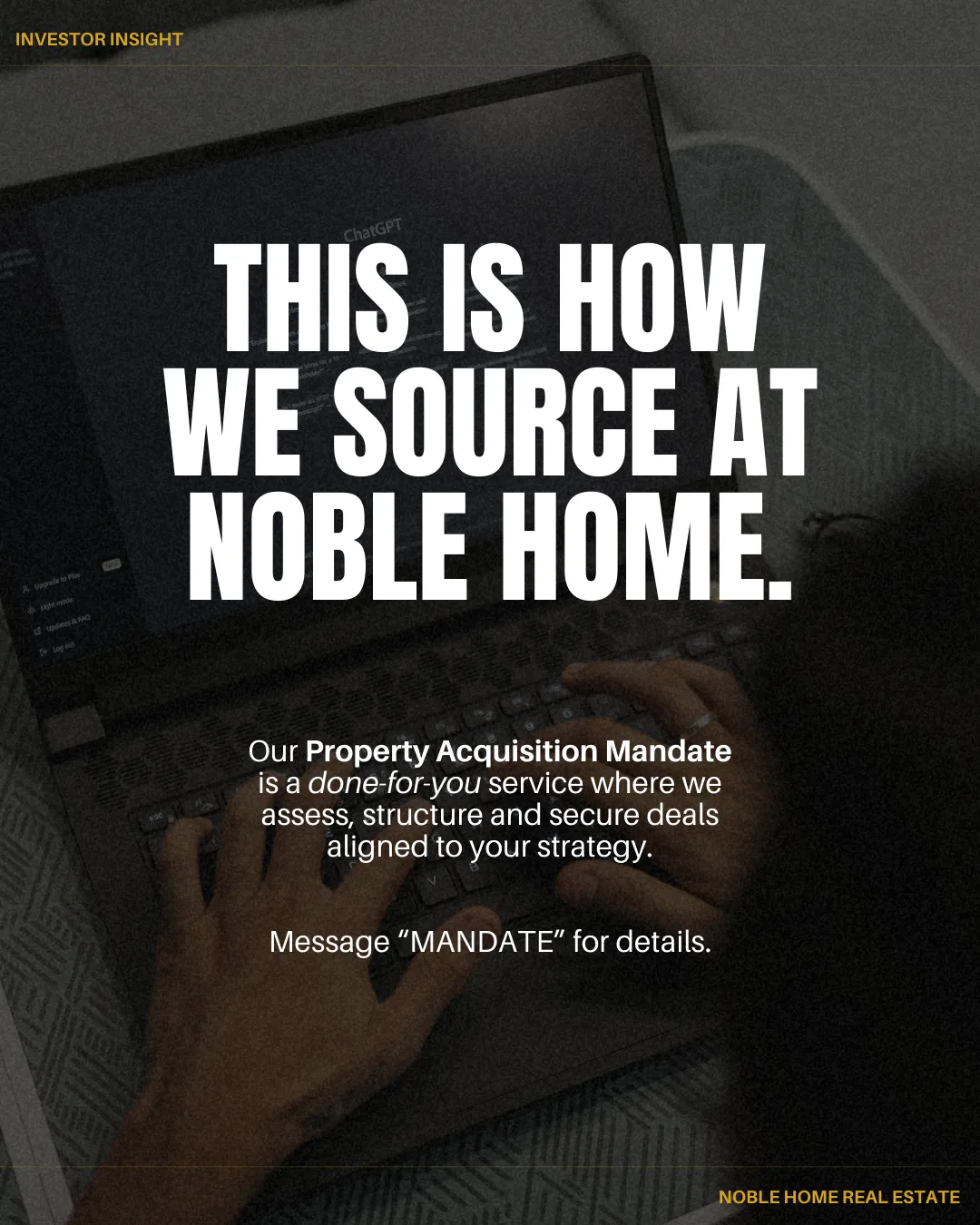 At Noble Home Real Estate, we follow a structured, mandate-led approach to property sourcing. Before any investment opportunity is shared, we review the strategy, analyse the financial performance, assess market demand and stress-test the key assumptions to ensure the deal is commercially viable. This means investors are presented with carefully vetted property opportunities rather than unfiltered leads, allowing you to move forward with clarity, confidence and a clear investment rationale.